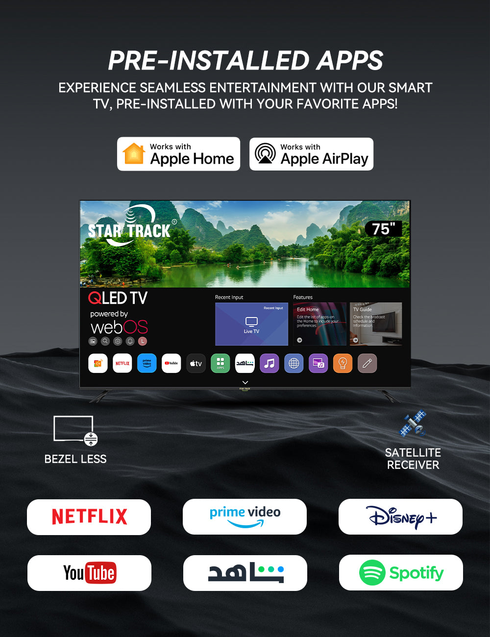 Experience brilliance like never before with the STAR TRACK 75 Inch QLED 4K Smart TV — designed to bring your entertainment to life.