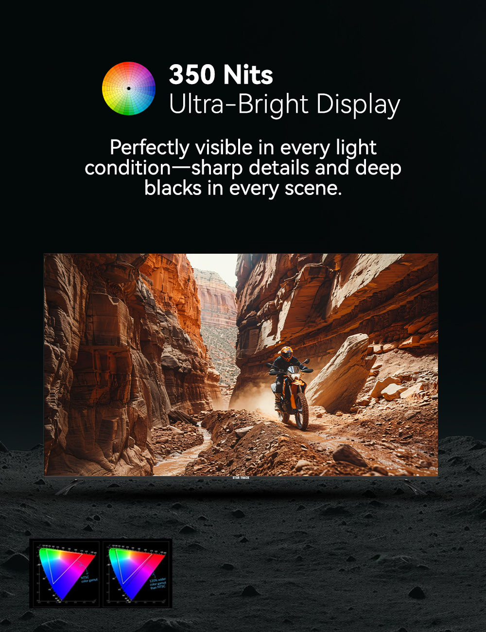 350 Nits Ultra Bright Screen – Sharp, clear viewing even in bright rooms