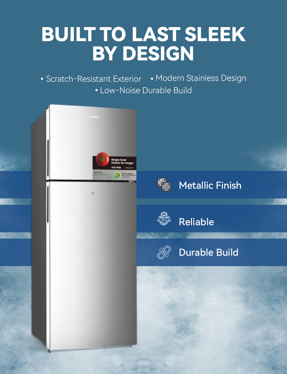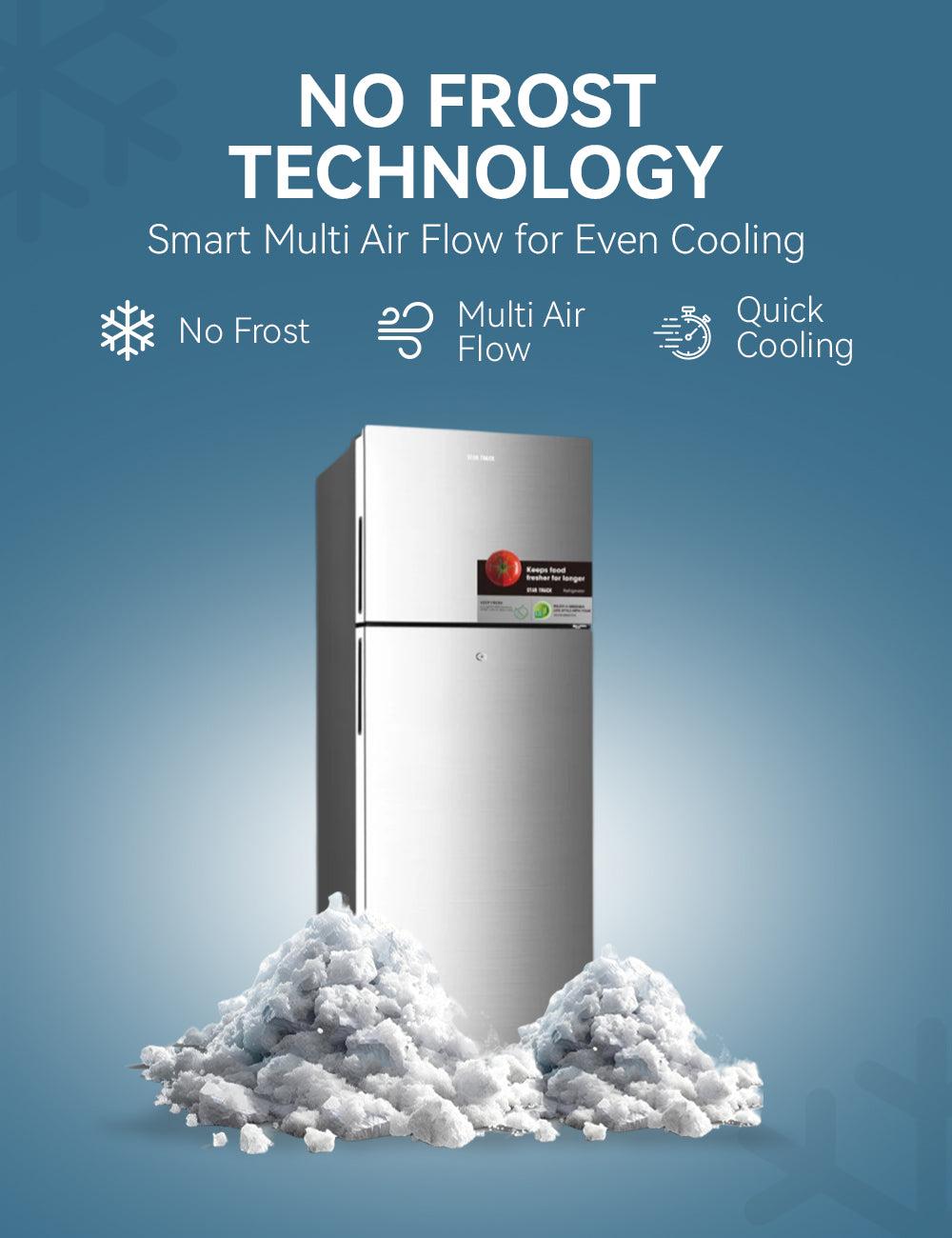 Upgrade your home with the STAR TRACK No Frost Refrigerator and enjoy effortless cooling with durable, stylish convenience!
