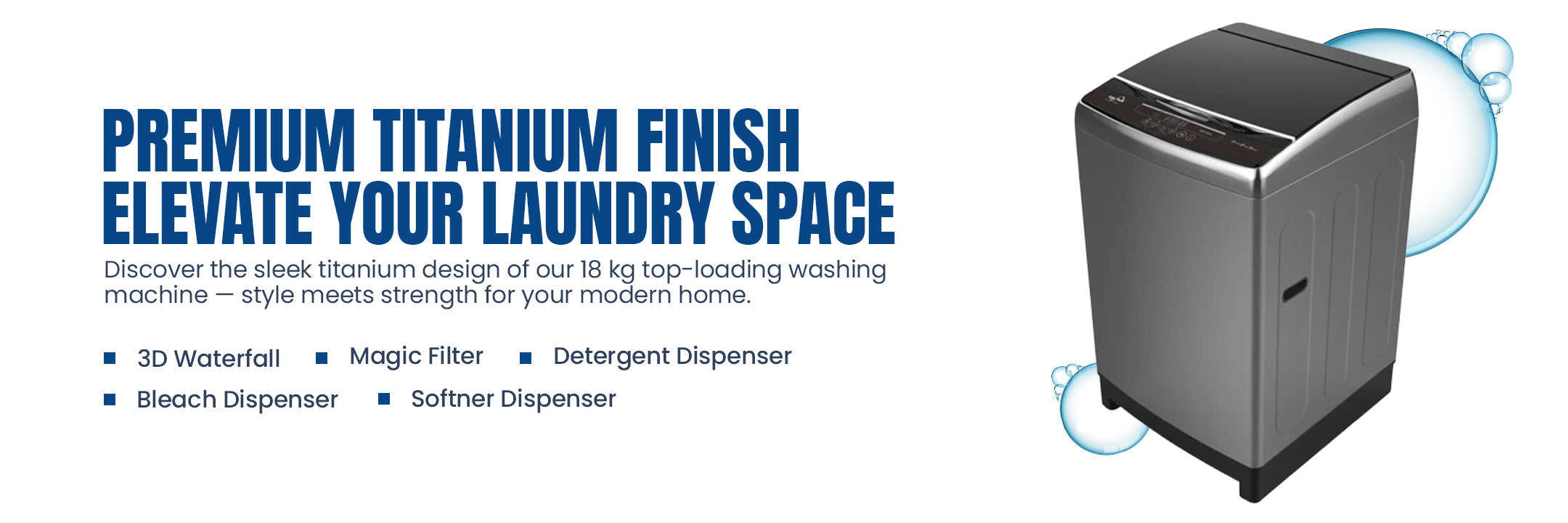 - لمسة نهائية أنيقة من التيتانيوم : تصميم عصري وأنيق يكمل أي مساحة غسيل.