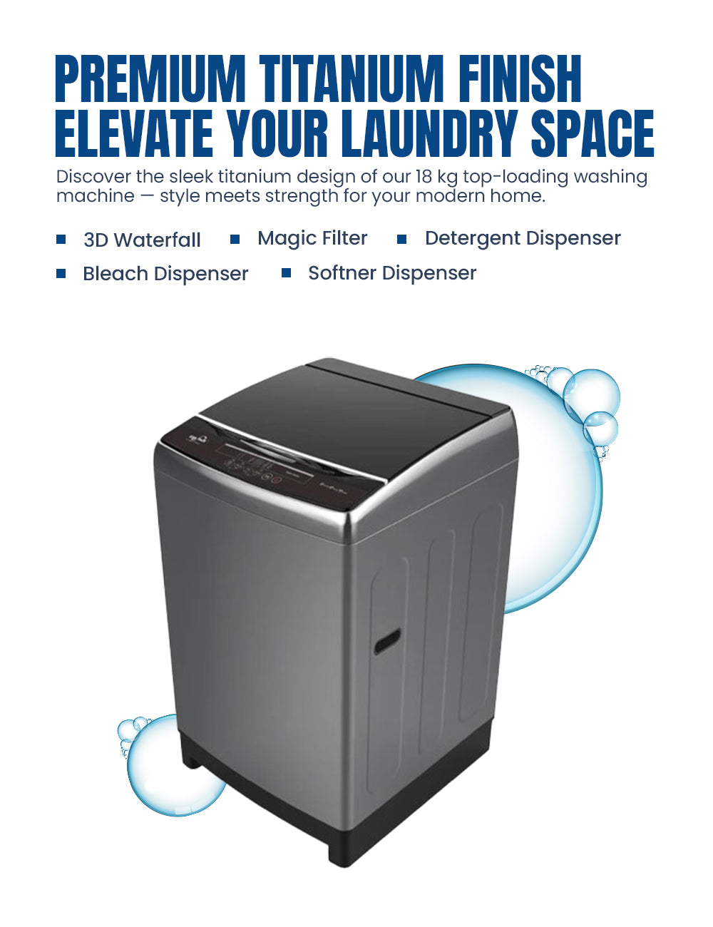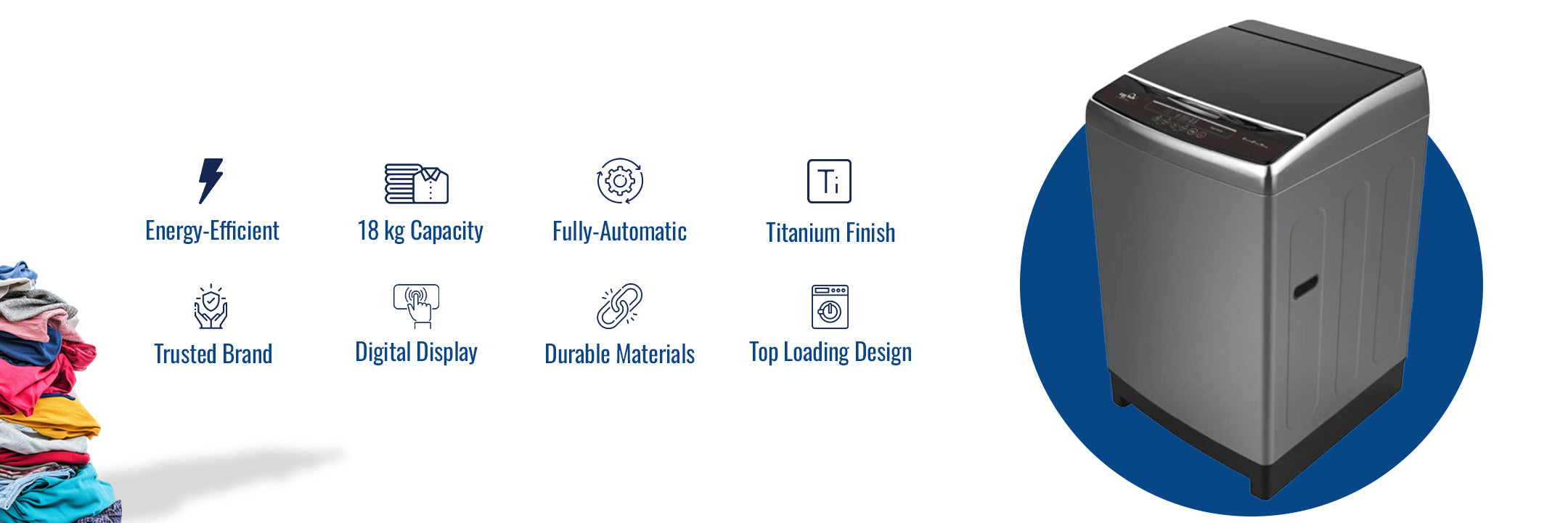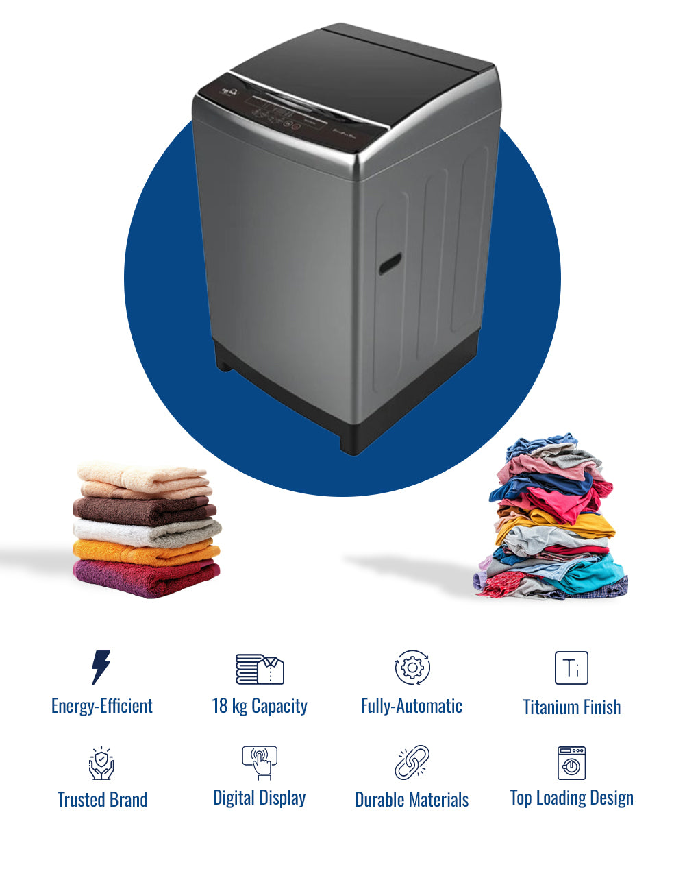 - سعة 18 كجم : مصممة للغسيل الشاق، مثالية للأسر الكبيرة أو الاستخدام التجاري.