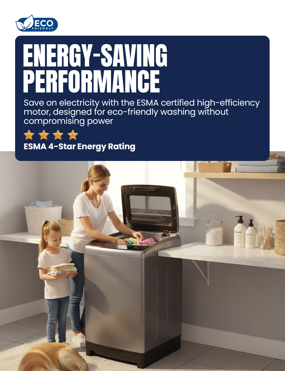 - أداء موفر للطاقة : حاصل على شهادة كفاءة الطاقة 5 نجوم من ESMA ، مما يضمن تنظيفًا قويًا مع الحد الأدنى من استهلاك الطاقة.