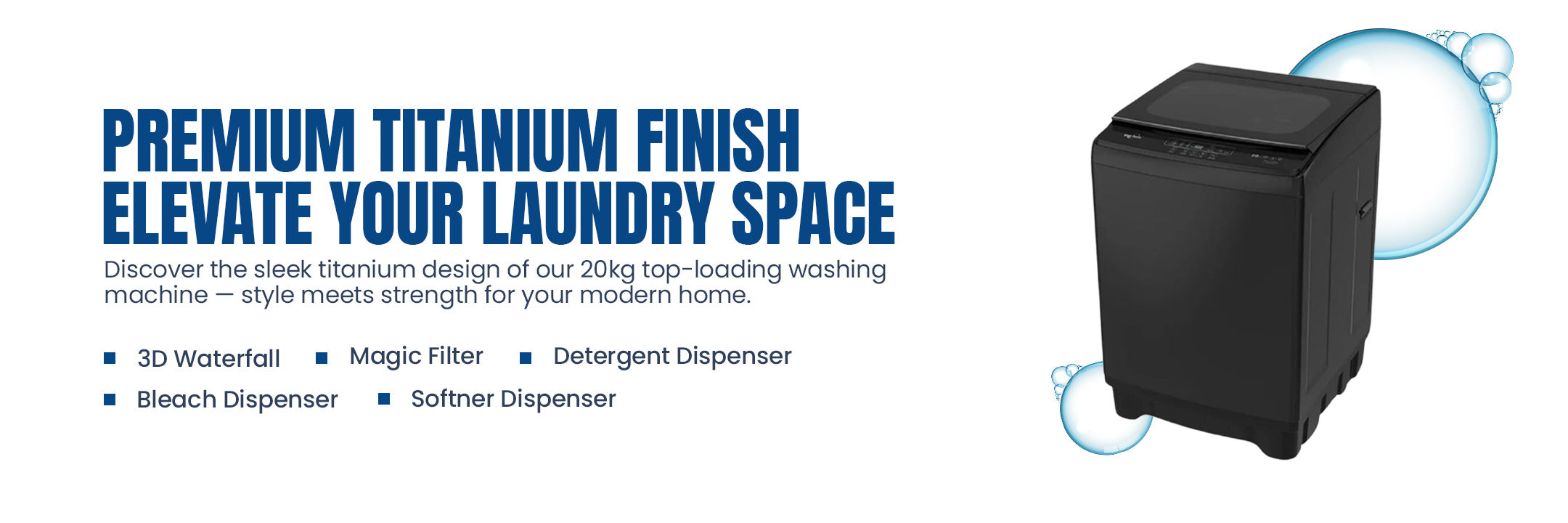 - لمسة نهائية أنيقة من التيتانيوم : تصميم عصري وأنيق يكمل أي مساحة غسيل.