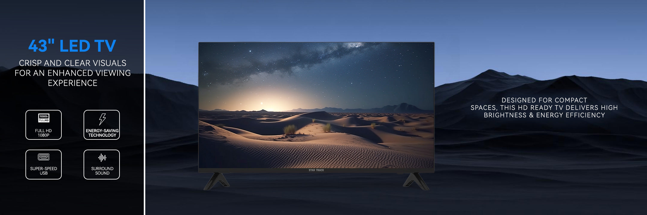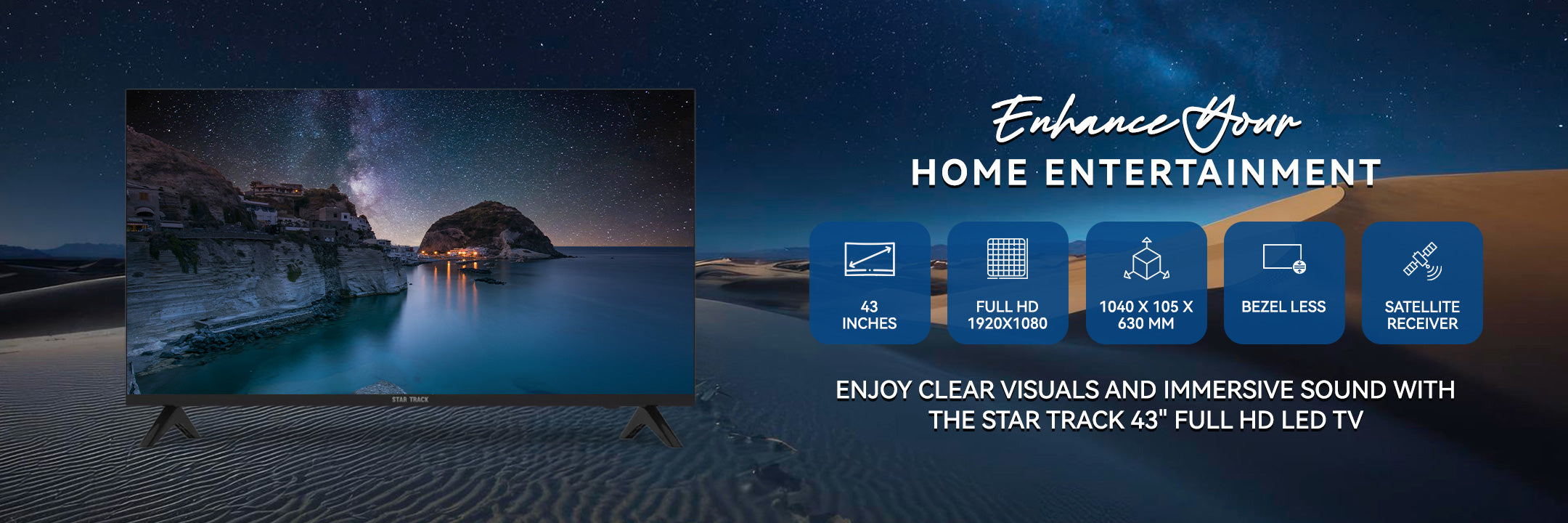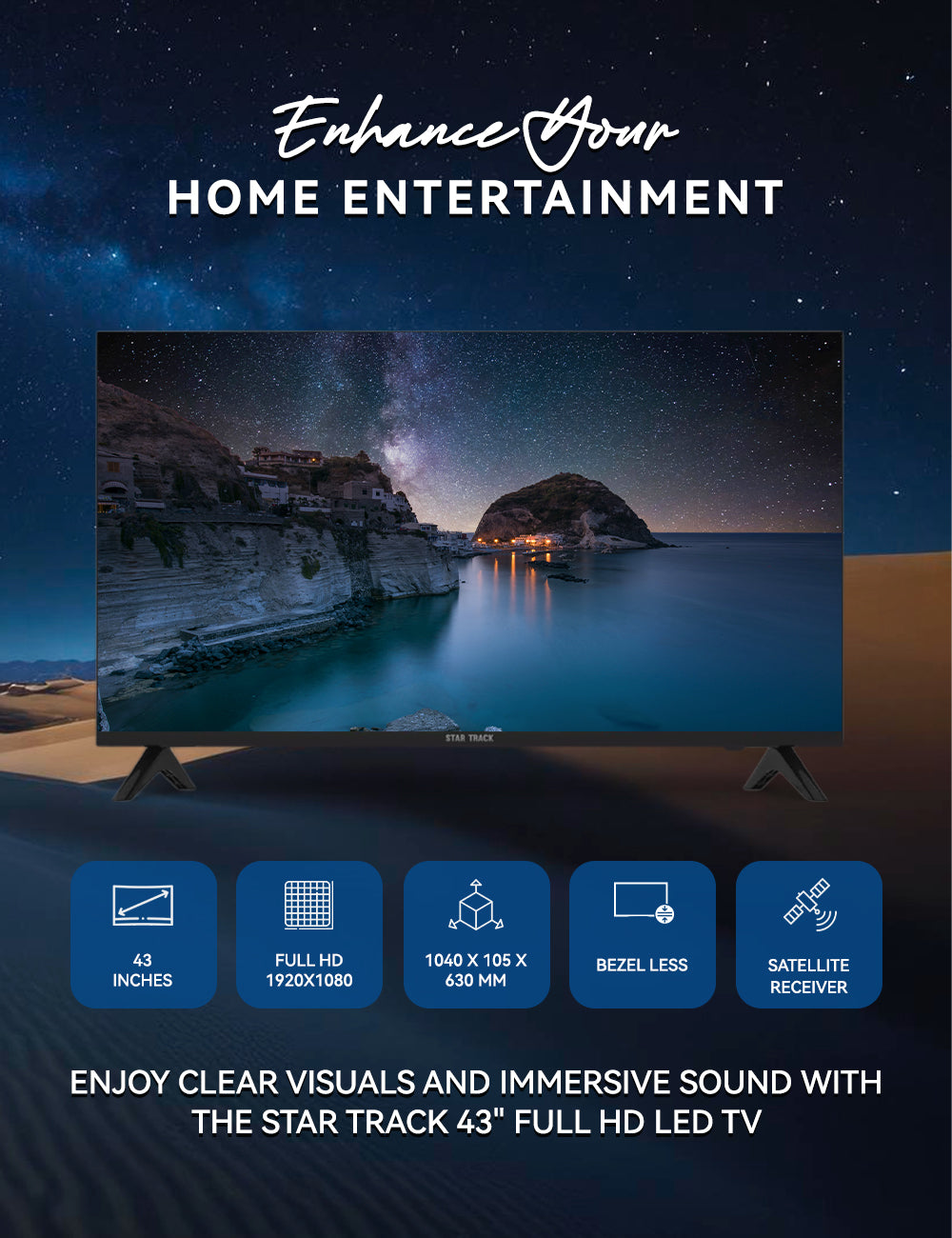 🎬 حسّن تجربة الترفيه لديك مع تلفزيون ستار تراك LED مقاس 43 بوصة! اطلب الآن واستمتع بوضوح يفوق الواقع! ✨