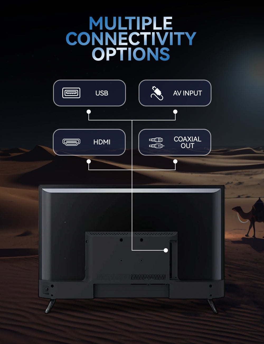 ✔ USB فائق السرعة ومنافذ متعددة - HDMI x3، USB x2، مدخل AV x1، مخرج محوري x1 .