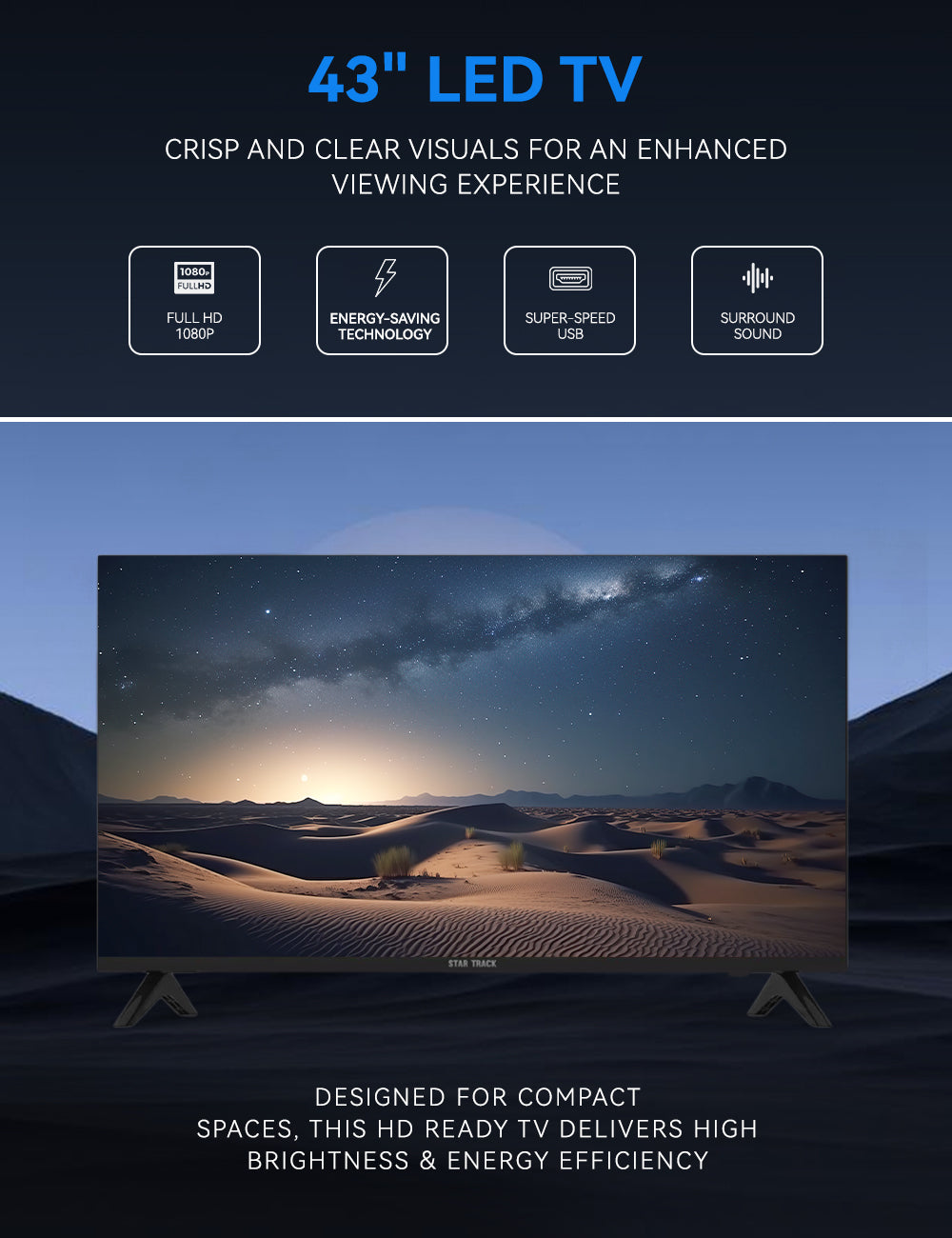 تلفزيون ستار تراك LED عالي الدقة بالكامل مقاس 43 بوصة - وضوح يفوق الواقع! ✨📺