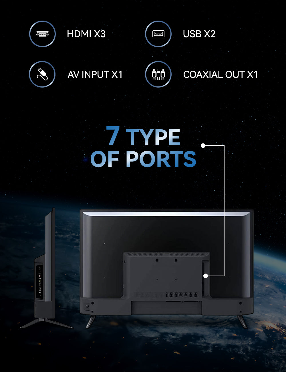✔ خيارات اتصال متعددة: HDMI x3، USB x2، مدخل AV x1، مخرج محوري x1 .