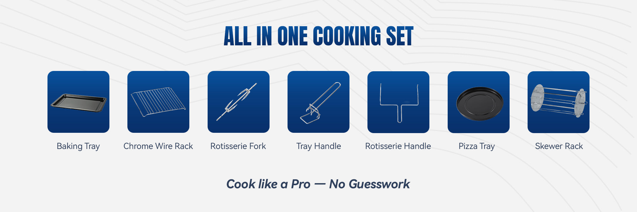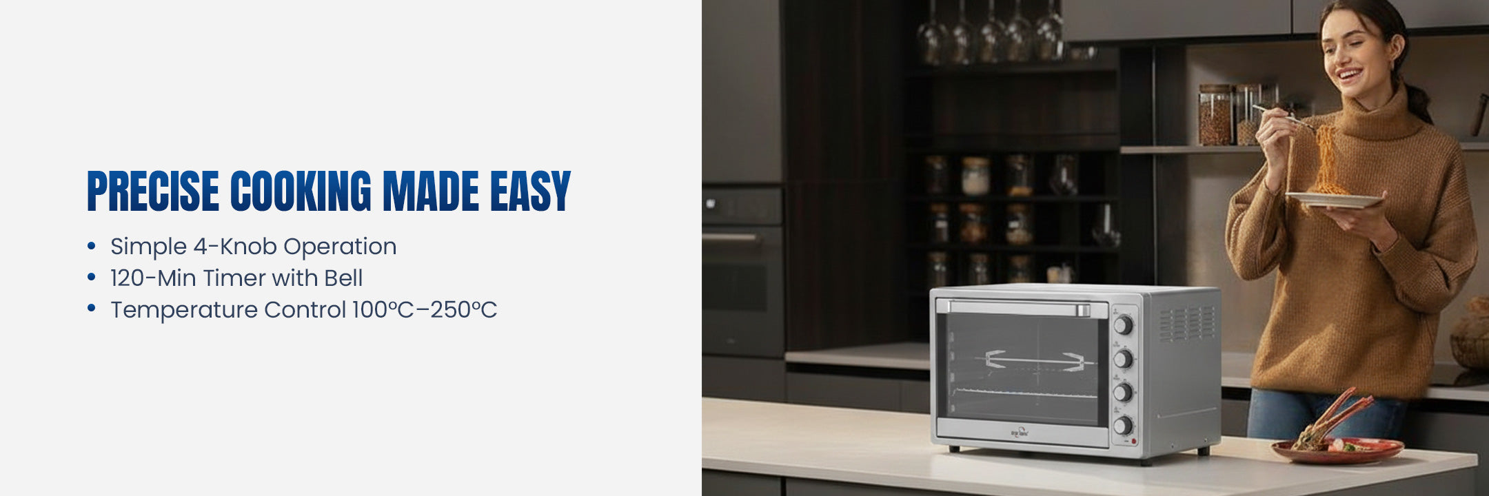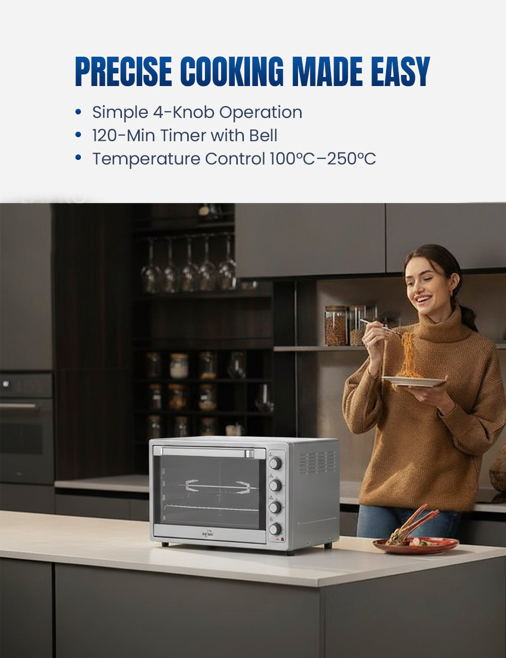 ✔ درجة حرارة قابلة للتعديل (100 درجة مئوية - 250 درجة مئوية) - مثالية للخبز والتحميص والشواء.