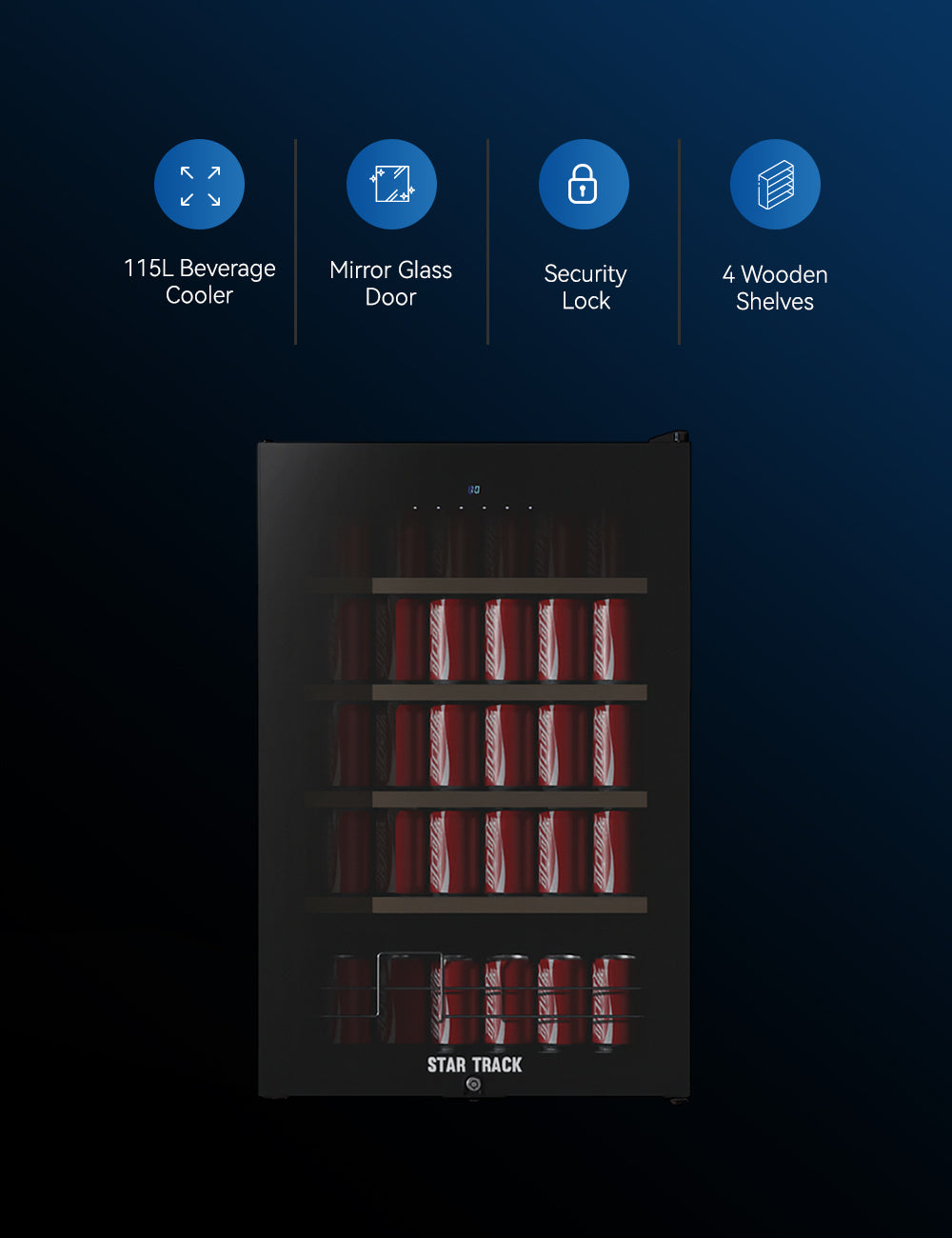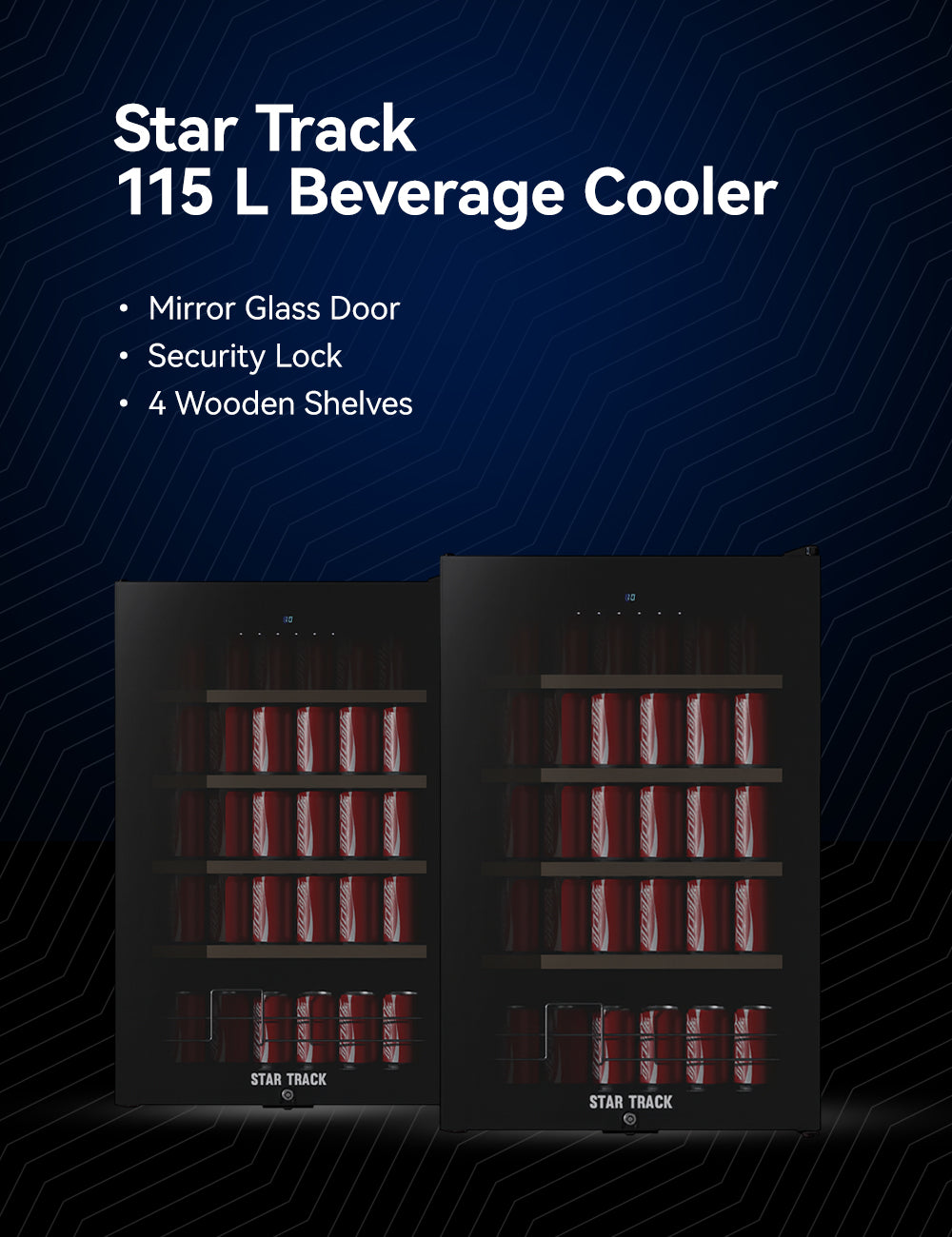 حسّن تخزين مشروباتك مع مبرد المشروبات ستار تراك سعة 115 لترًا ، المصمم ليجمع بين العملية والأناقة. سواء كنت من هواة جمع المشروبات أو من محبي المشروبات المبردة الجاهزة، يجمع هذا المبرد بين الميزات الفاخرة والمظهر العصري الأنيق ليناسب أي مساحة.