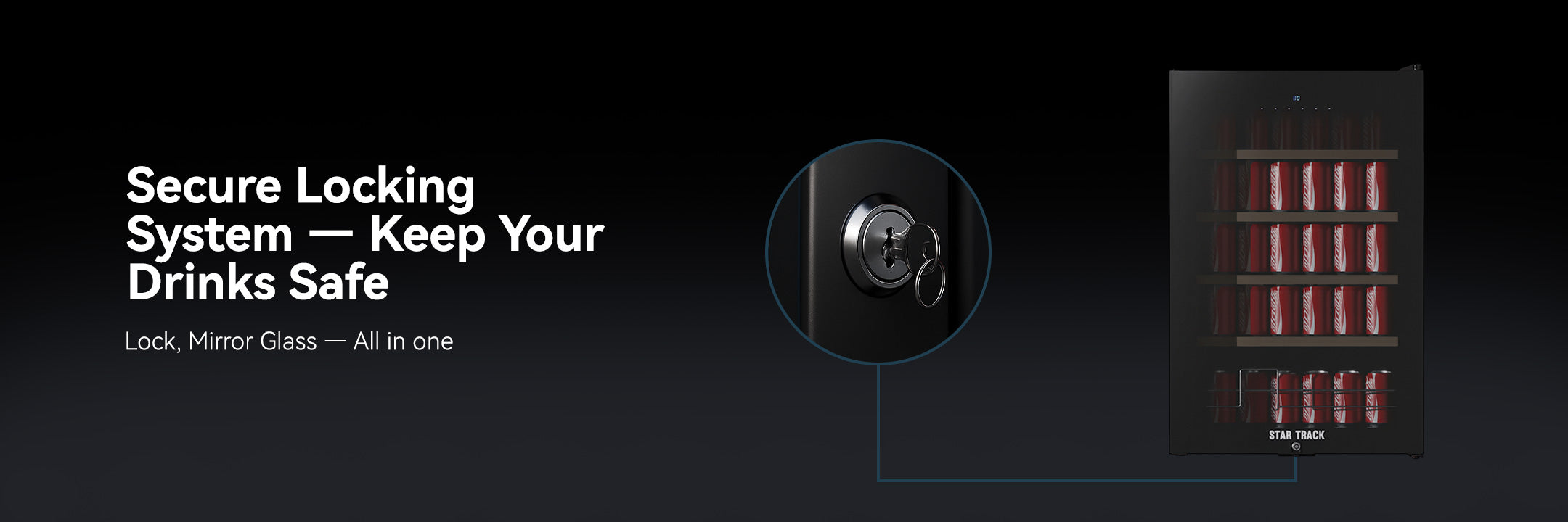 تخزين آمن مع قفل: لراحة بالك، يضمن قفل الأمان المدمج حماية مجموعتك من الوصول غير المرغوب فيه. سواءً في مساحة مشتركة أو في بار منزلي، ستبقى مشروباتك آمنة وخصوصية.