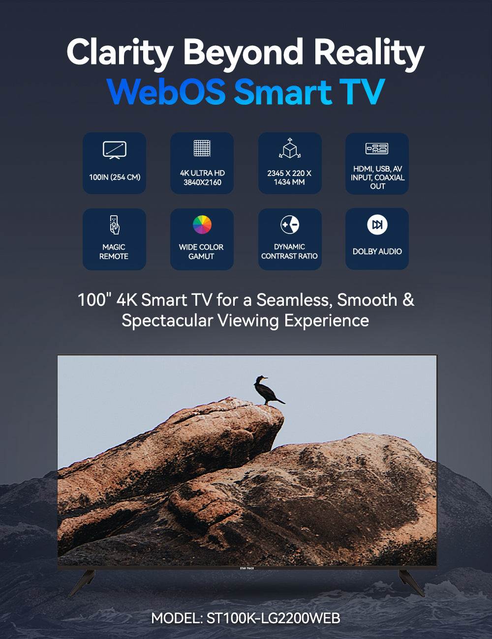🎬 Upgrade your entertainment with the Star Track 100” 4K Smart TV! Order now and bring the future of smart viewing home! 🚀