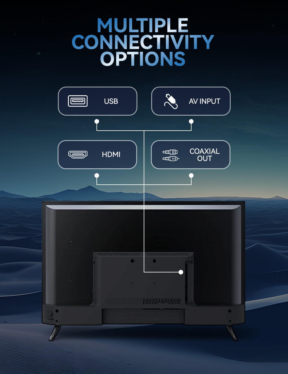 β Super-Speed USB & Multiple Ports β HDMI x3, USB x2, AV Input x1, Coaxial Out x1.
