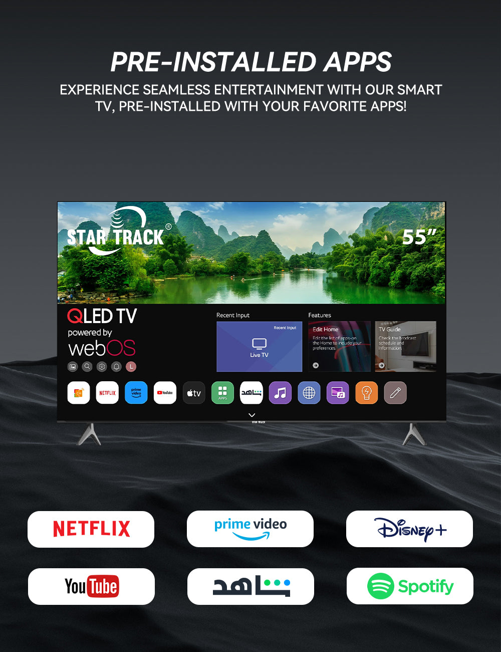 Experience brilliance like never before with the STAR TRACK 55 Inch QLED 4K Smart TV — designed to bring your entertainment to life.