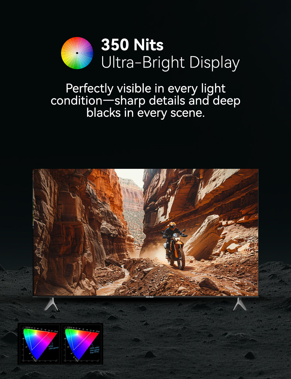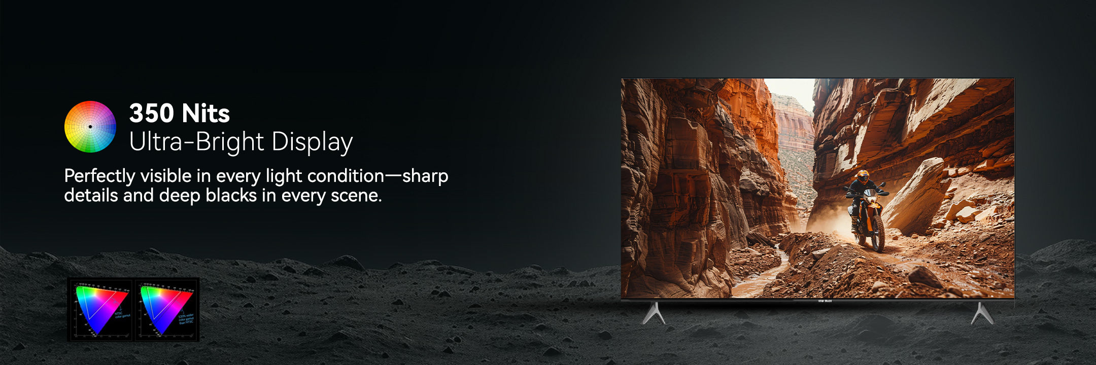 Crafted for modern homes, the ultra-bright 350 nits display ensures crystal-clear viewing in any lighting condition, making it perfect for both living rooms and bedrooms.