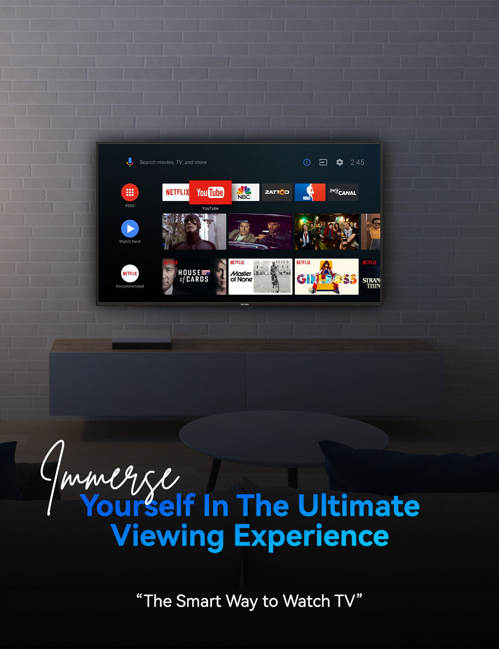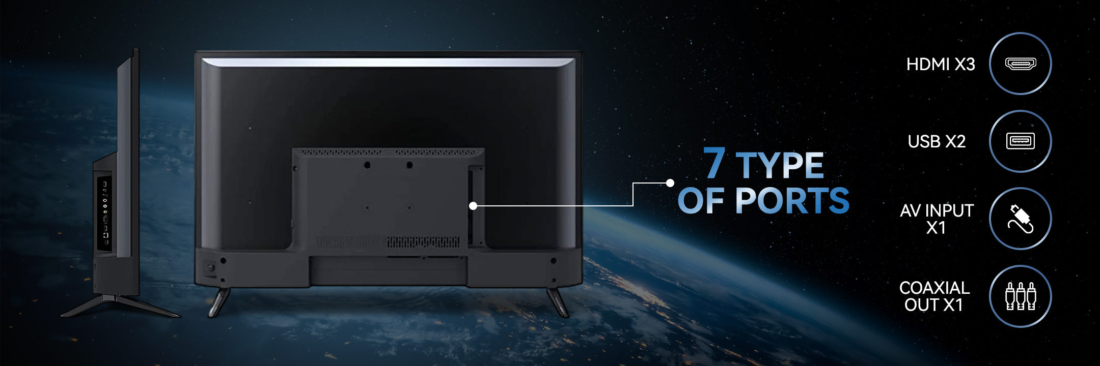 ✔ Multiple Connectivity Options: HDMI x3, USB x2, AV Input x1, Coaxial Out x1.
