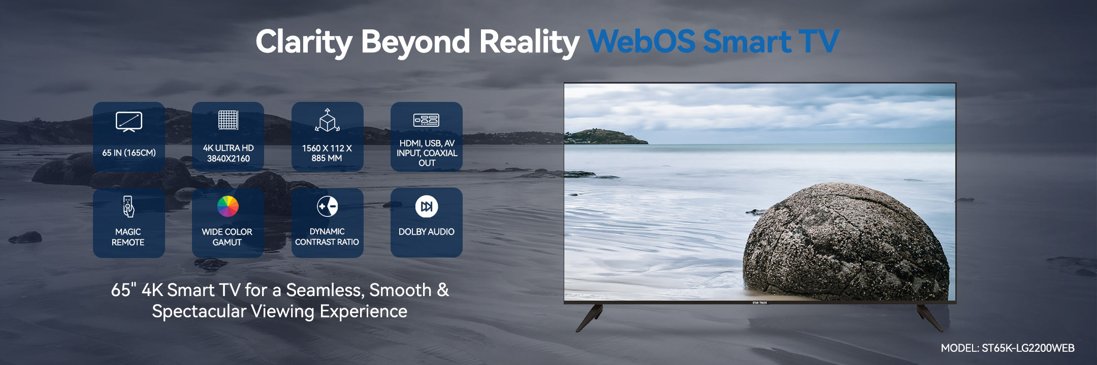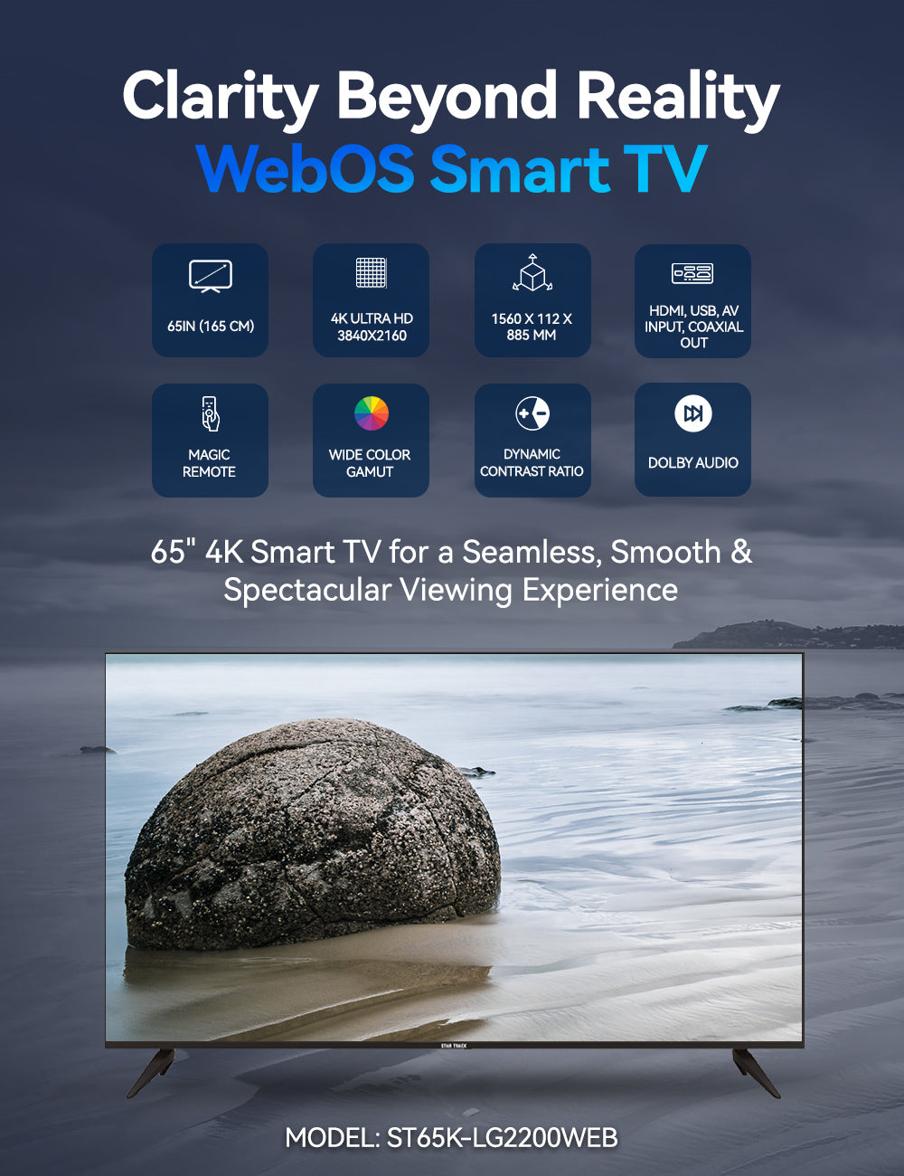 🎬 Upgrade your entertainment with the Star Track 65” 4K Smart TV! Order now and bring the future of smart viewing home! 🚀