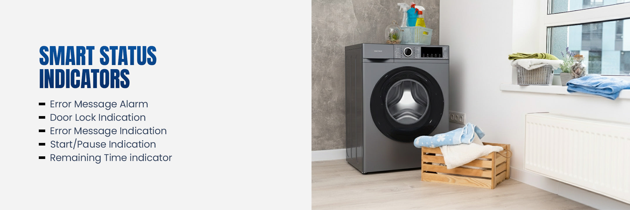 Space-Saving Slim Profile: Perfect for apartments or compact laundry areas, the machine features a slim depth of 405 mm (598x405x845 mm WxDxH) without sacrificing wash quality.