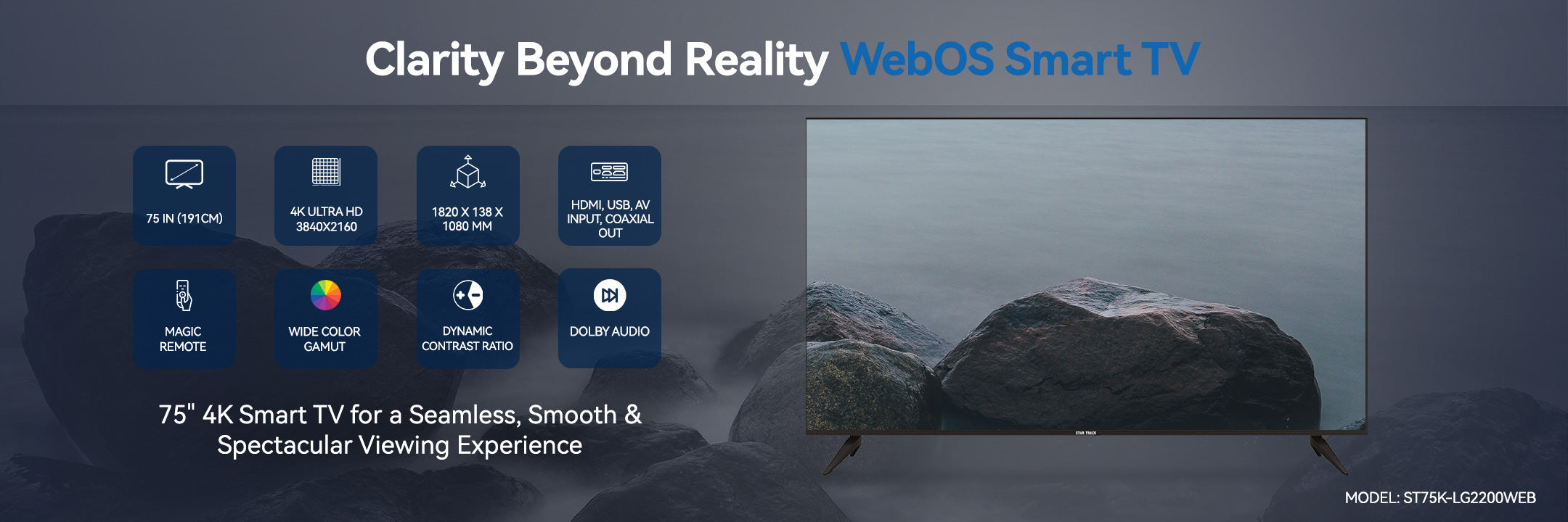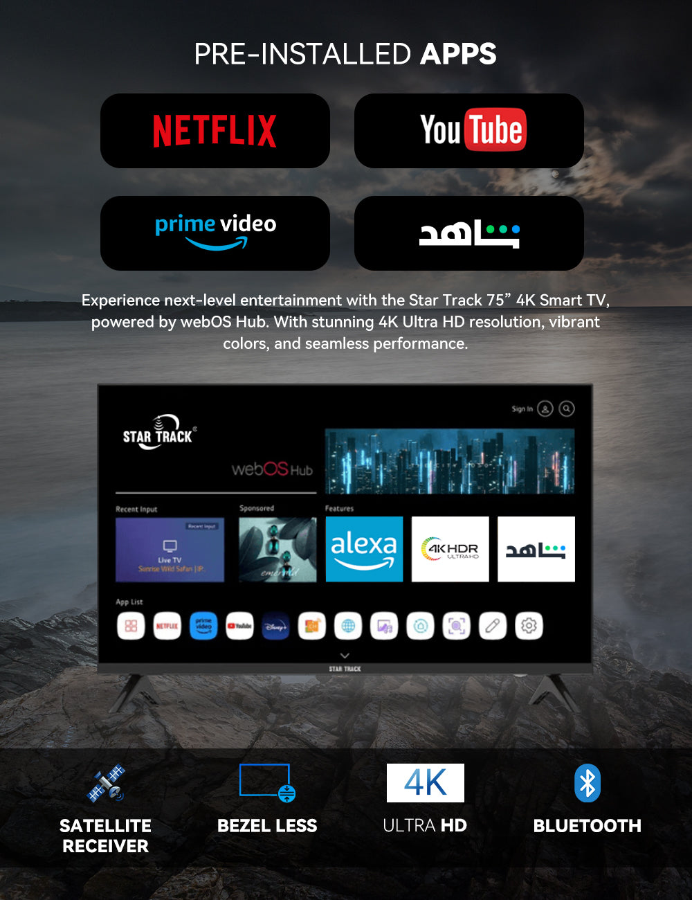 🎬 Upgrade your entertainment with the Star Track 75” 4K Smart TV! Order now and bring the future of smart viewing home! 🚀