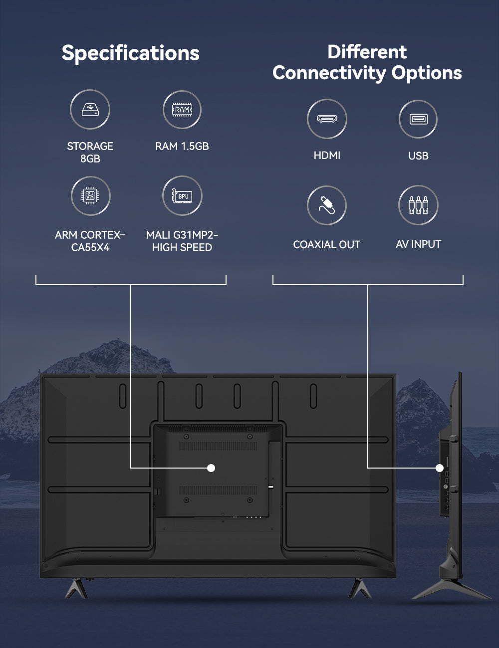✔ DVB-T, DVB-S2, DVB-T2 Support – Enjoy digital and satellite channels.
