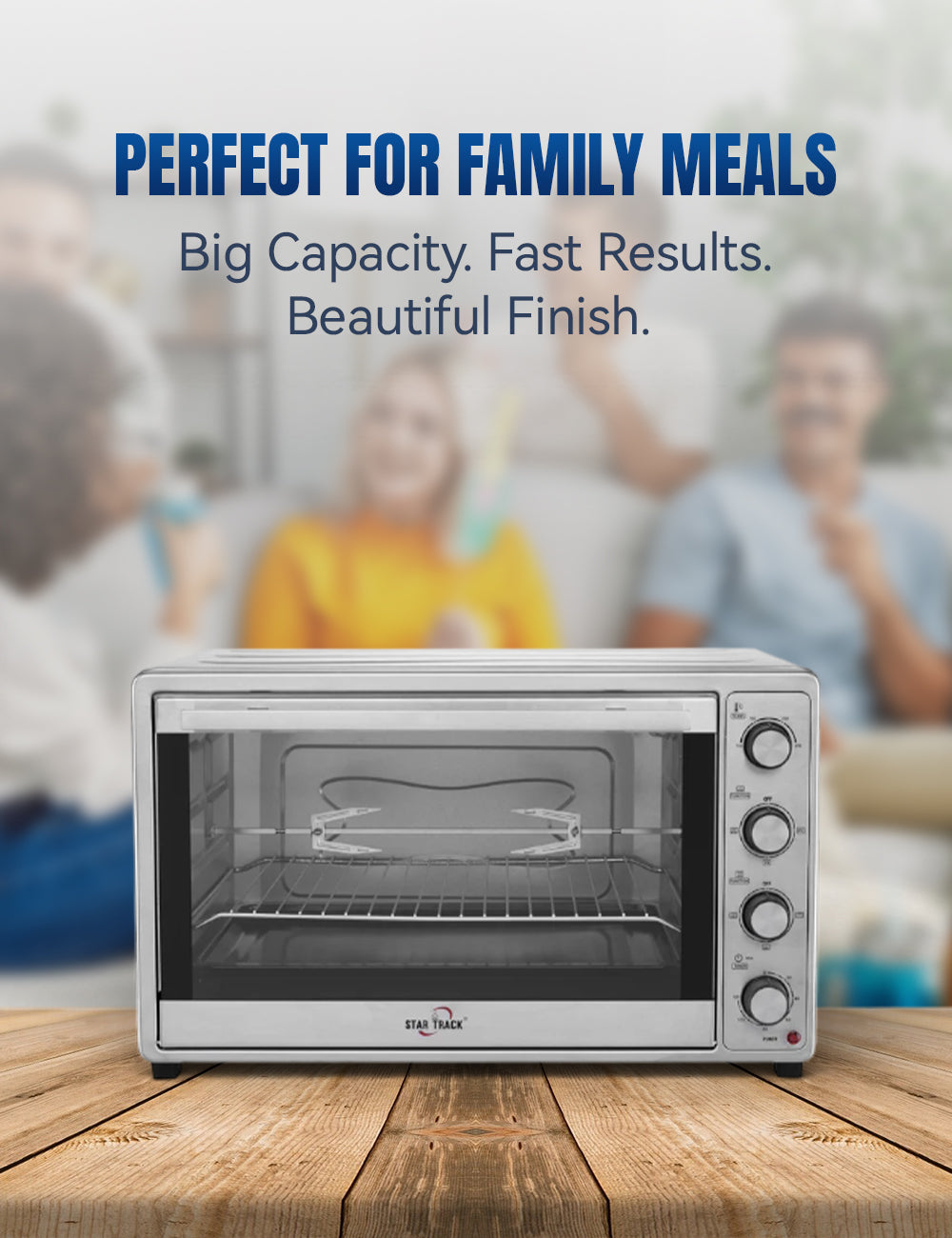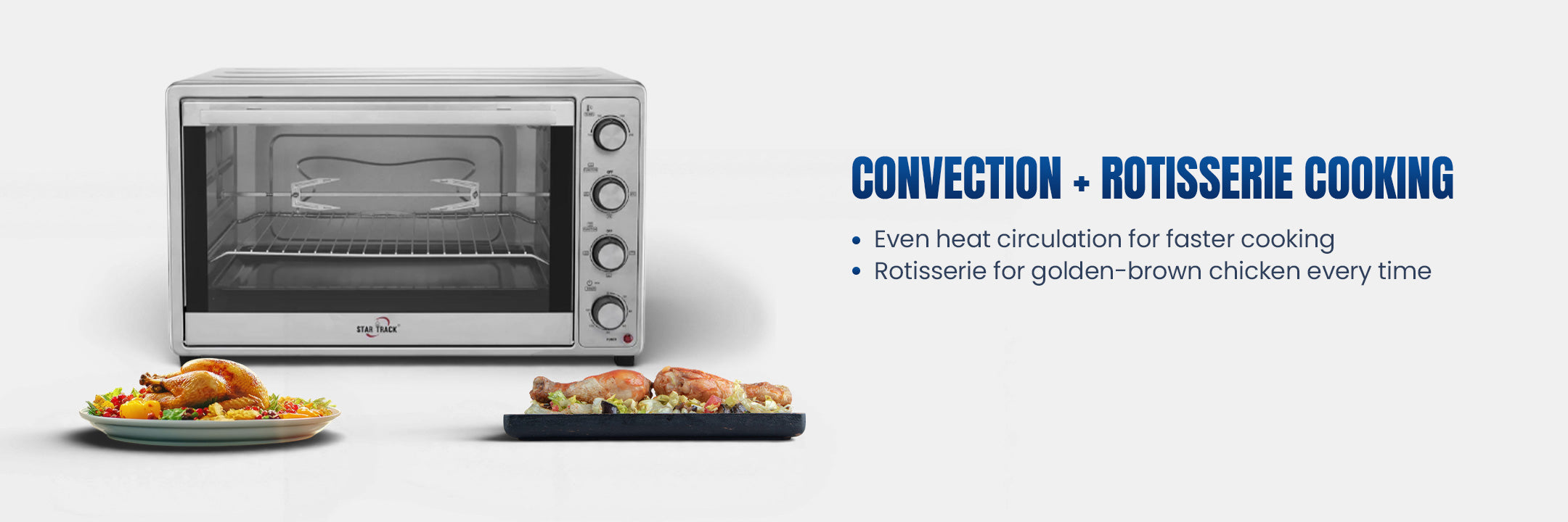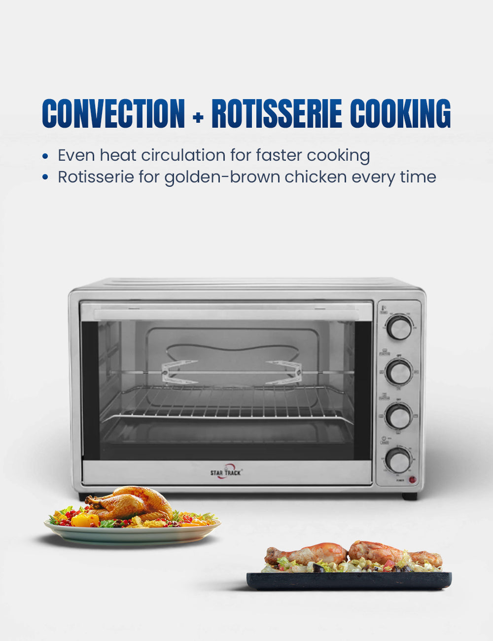 The Star Track 66L Electric Oven is built for those who love cooking large, flavorful meals with ease. Whether you're hosting a family gathering or experimenting with new recipes, this oven’s spacious capacity, rotisserie, and convection technology ensure every dish is cooked to perfection.