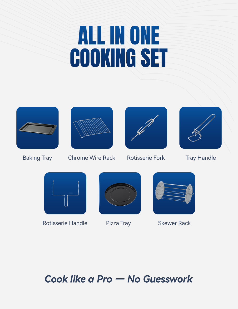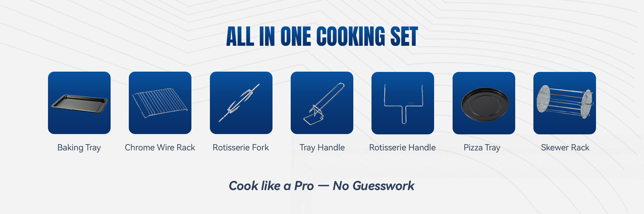 ✔ Rotisserie Function – Cook whole chickens and kebabs with even, golden-brown results.