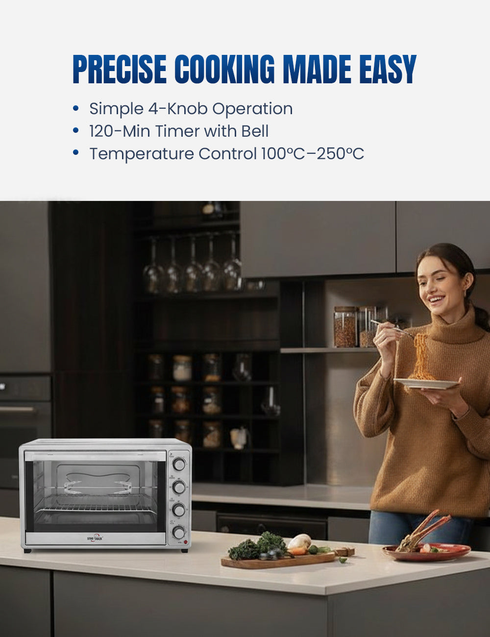 ✔ 4-Knob Control System – Effortless control over timer, temperature, and cooking mode.
